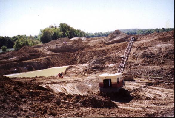 Shown here is a smaller Bucyrus machine digging the slip for the barge.The slip is dug just big enough to push the barge in for loading