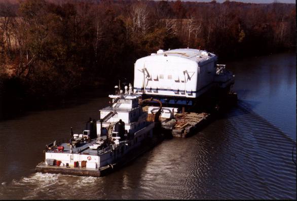 David Hope's 1450 being moved on a barge pics