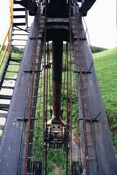 Looking up the boom from the top of the machine. If you look carefully through the boom on the left side of the dipper stick, you can see the 1260B's spare bucket and a BE 60R drill rig.