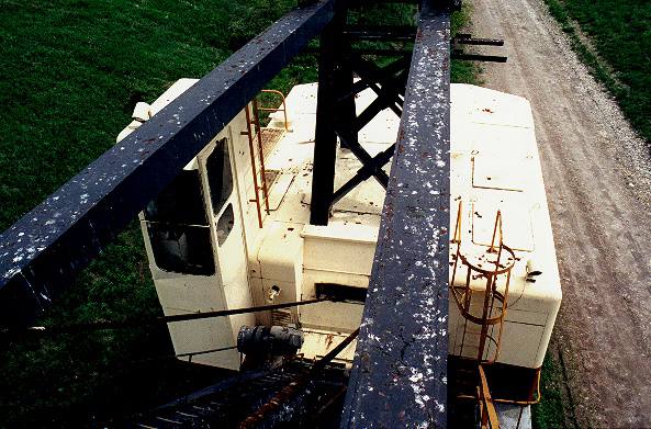 Looking down on the machine from halfway up the boom (near the saddle block).